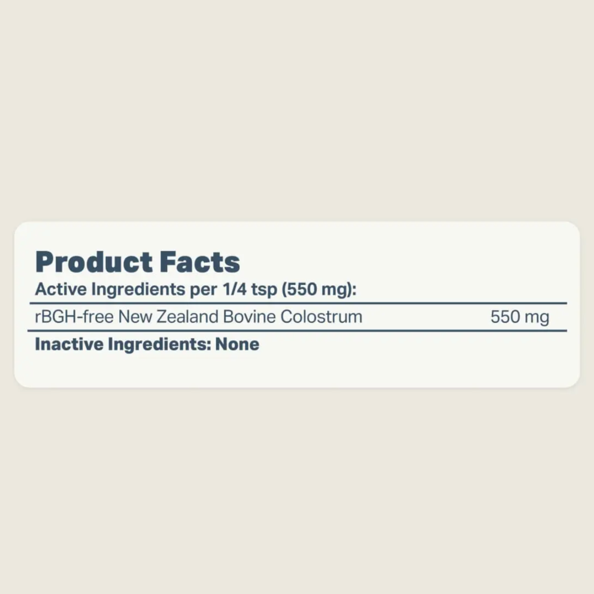 rBGH-Free Bovine Colostrum: Collected from pasture-raised, hormone-free New Zealand cows. Rich in immunoglobulins (IgG, IgA), lactoferrin, and growth factors that support immune balance, gut integrity, and skin health.