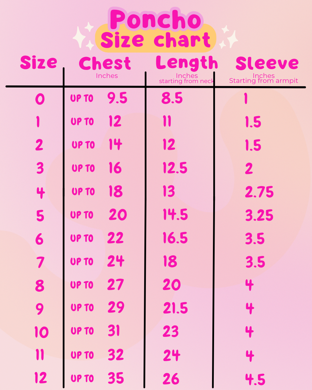 🧵 Owa Owa Poncho Size Guide (tap to view)