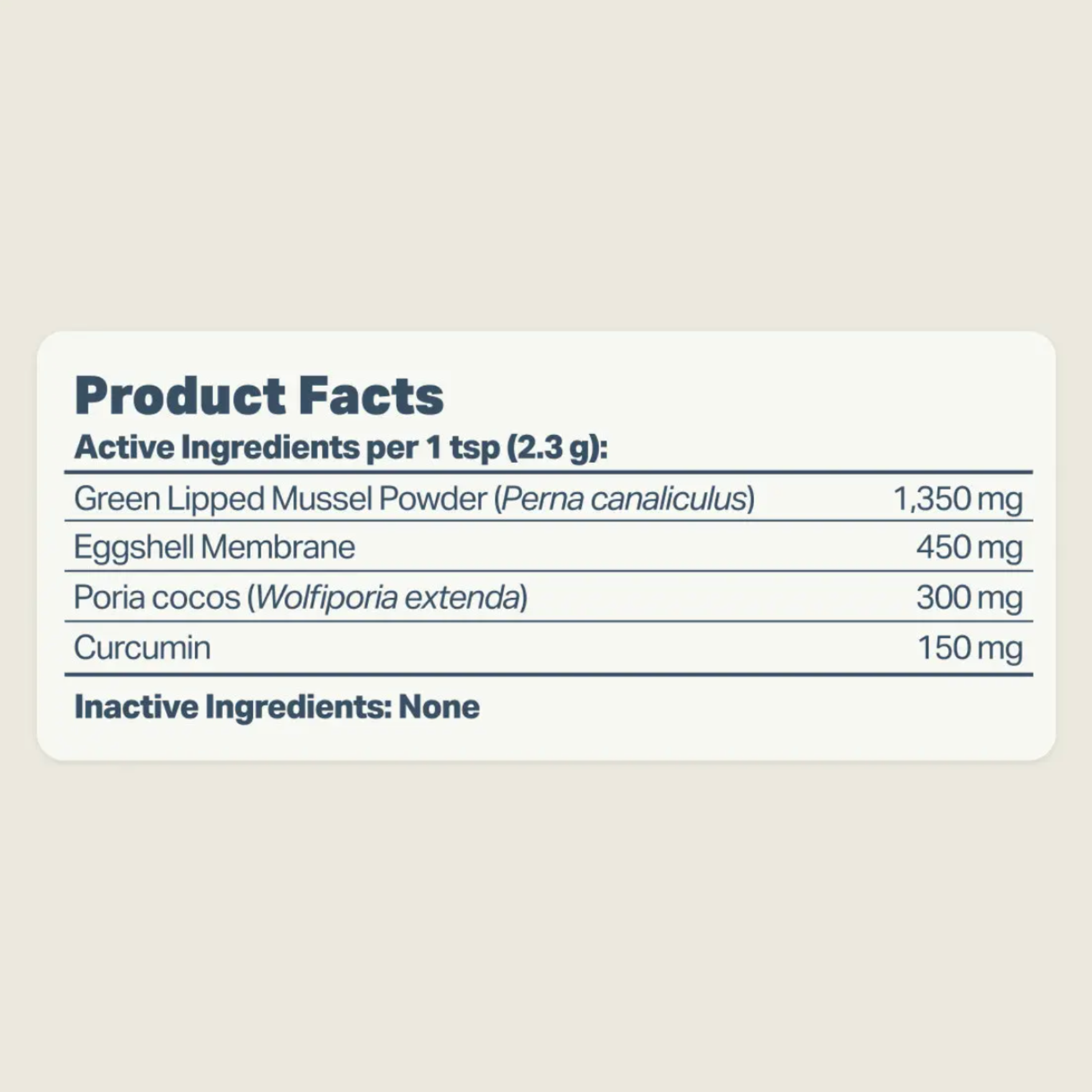 - Green-Lipped Mussels: sustainably farmed in New Zealand, rich in ETA omega-3s and glycosaminoglycans (GAGs) that support joint cushioning and flexibility.